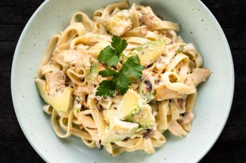 Cream Sauce, Chicken Pieces, Avocado, Onion, Mushrooms & Garlic