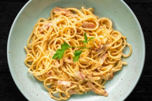 Creamy Cheese Sauce with Bacon and Onion. Contains Egg