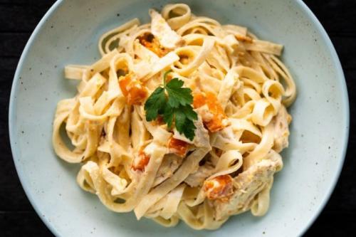 Chicken, Roasted Pumpkin, Onion, Pine Nuts, Garlic, White Wine, Cream, & Parmesan